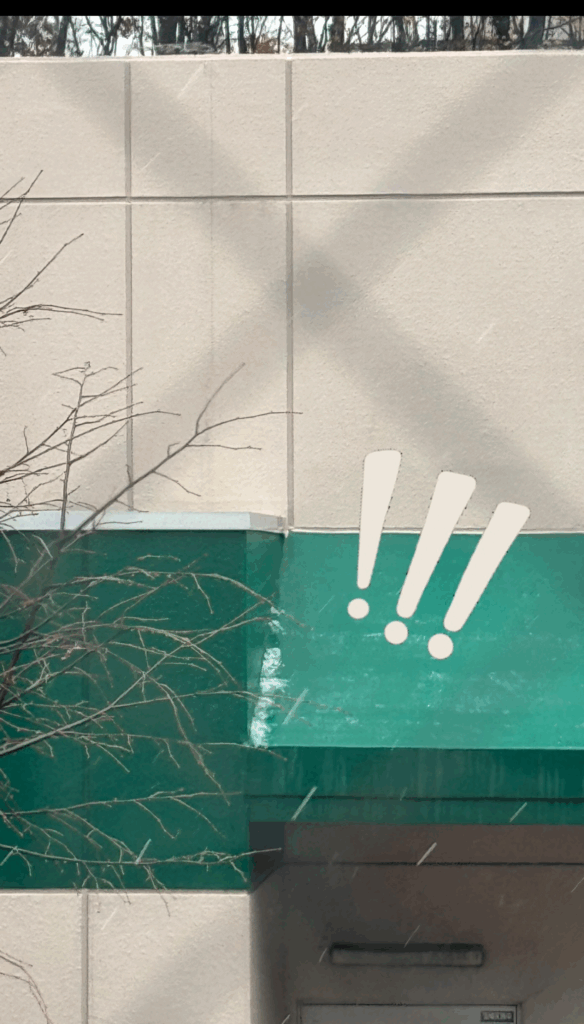 見えますかね?!スーパーの屋根の上にうっすら雪!