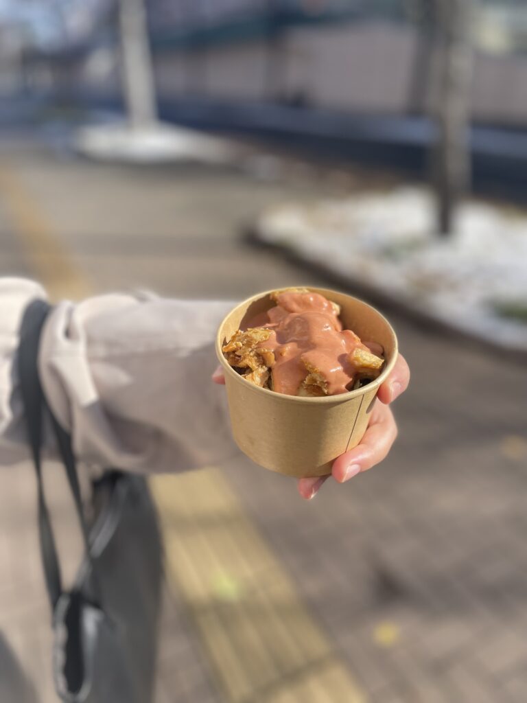 今日は、雪も少しつもり寒かったですが、お昼休み近くのキッチンカーに行ってまみした✨