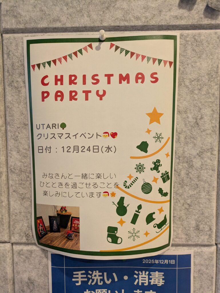 今日のお昼休憩中。掲示物コーナーに貼られたクリスマスイベントの張り紙を見て利用者様がポツリ・・・。