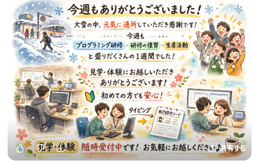 今週は大雪の影響で交通機関の運休が相次ぎ、移動がとても大変な一週間となりました。
