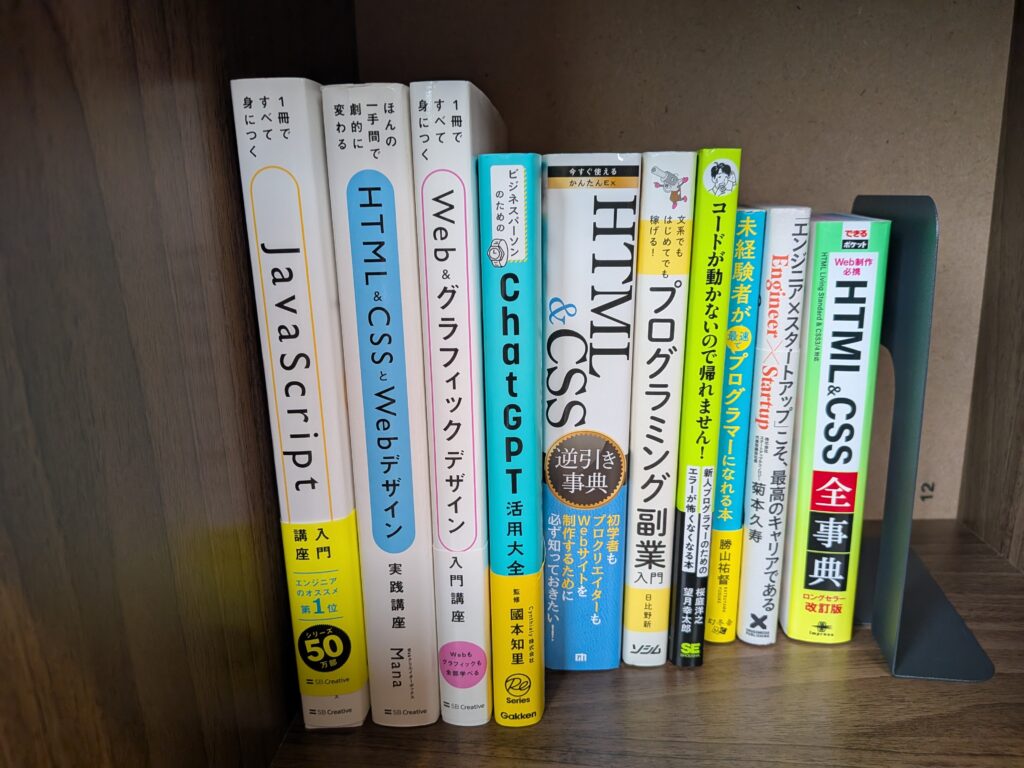 さて、UTARIは本日も沢山の利用者さんが通所してくれています。そんな中で日々充実していっているのが「プログラミングの参考書」です。皆さん自分の学習のペースに合わせ、適宜ご利用されております。